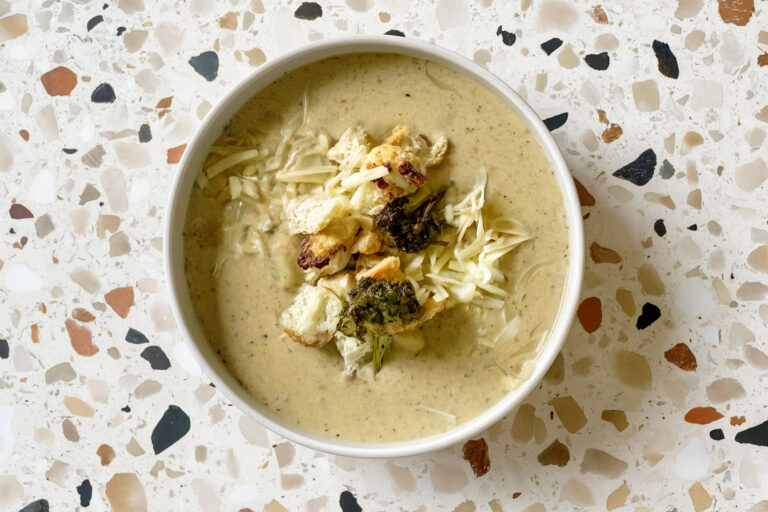 Broiled Broccoli and Cauliflower Cheddar Soup