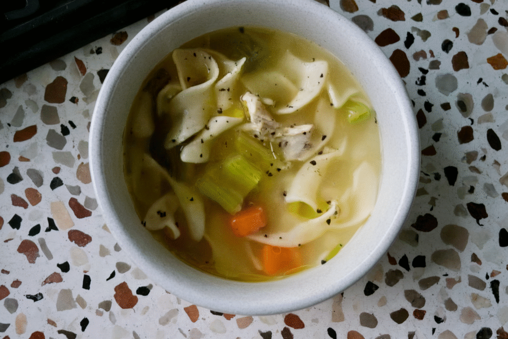 Add the egg noodles and let the soup simmer over medium-low heat for ~7-10 minutes, or until the noodles are tender.