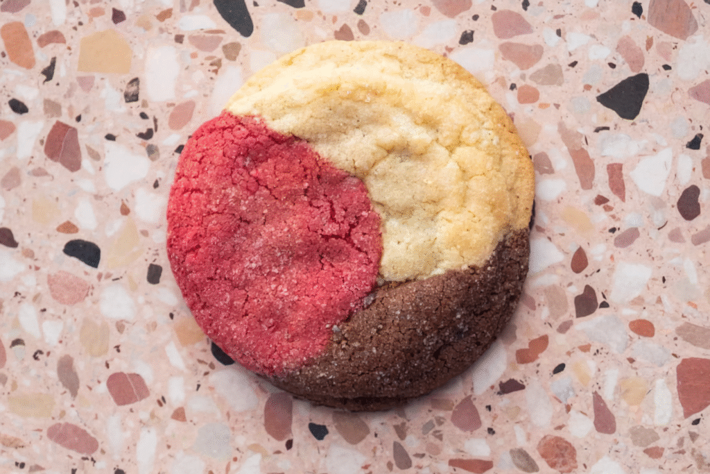 Use a tablespoon or a small cookie scoop to portion out one scoop of each of the three doughs (vanilla, strawberry, and chocolate).