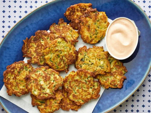The chickpea flour is the key here – regular flour won’t give you the same crunch. Find it at Indian stores or the international aisle. These reheat OK in the oven but they’re best fresh.